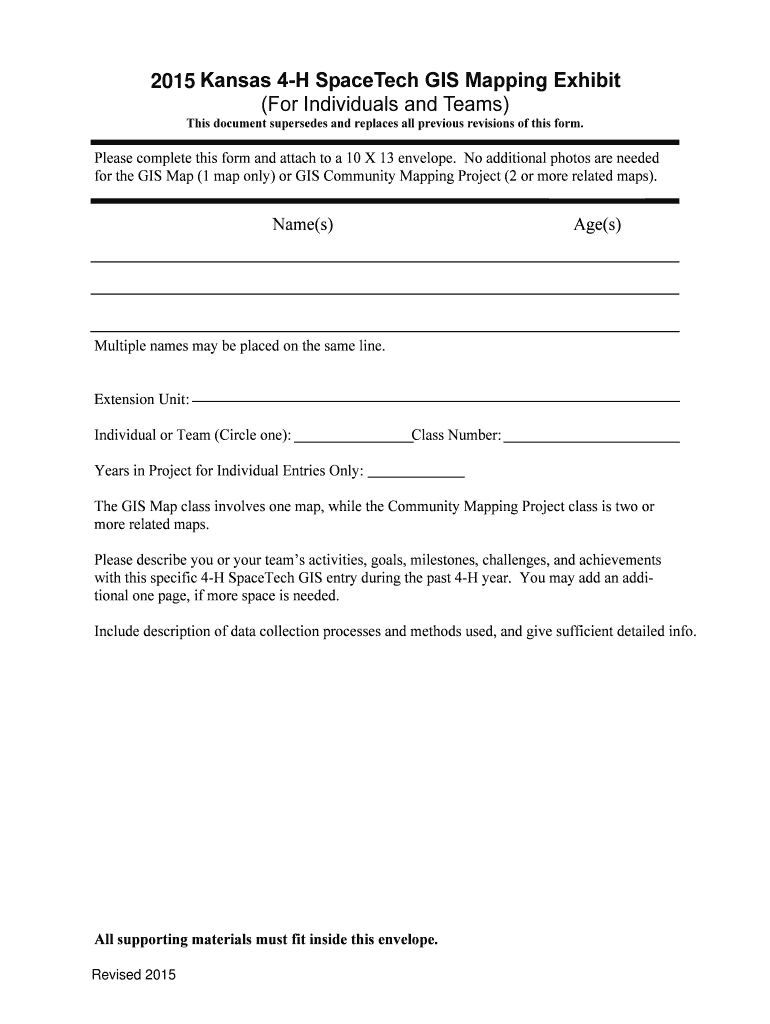 2014 Kansas 4H Speech GIS Mapping Exhibit 2015 (For Individuals and Teams) This document supersedes and replaces all previous revisions of this form. Please complete this form and attach to a 10 13