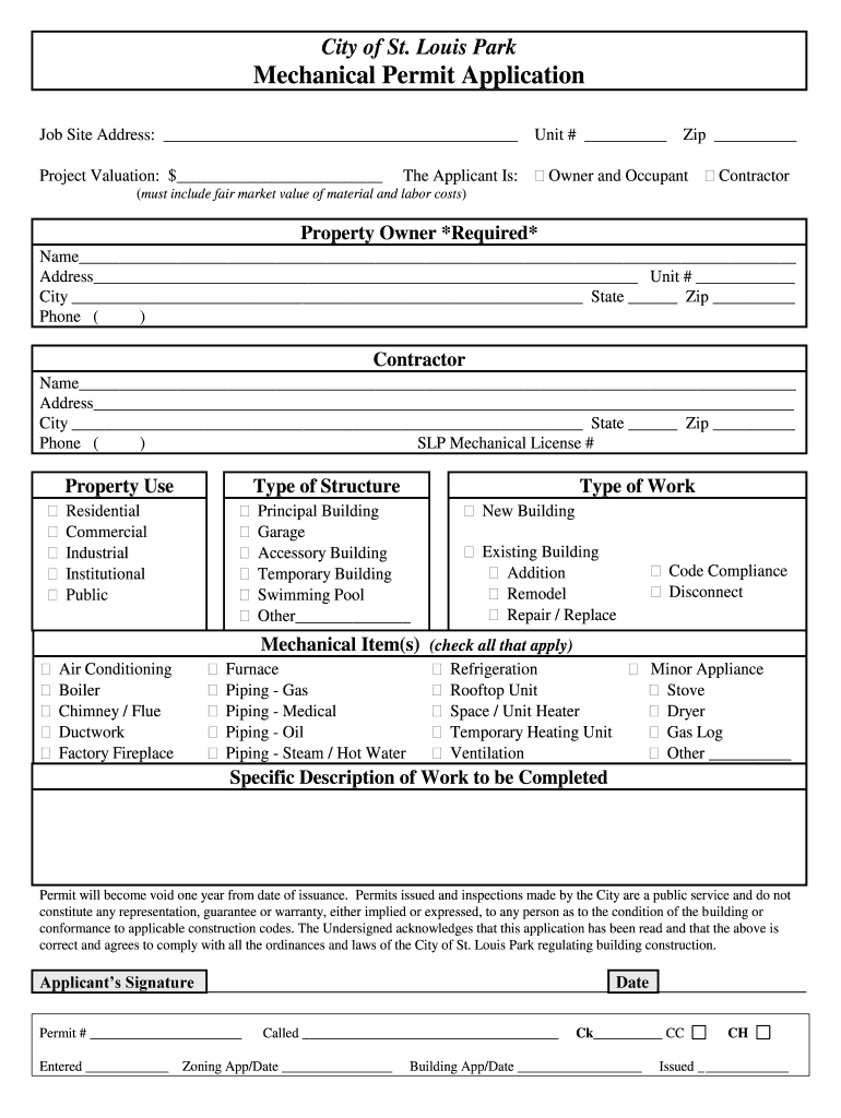 How to fill out louis park mechanical permit