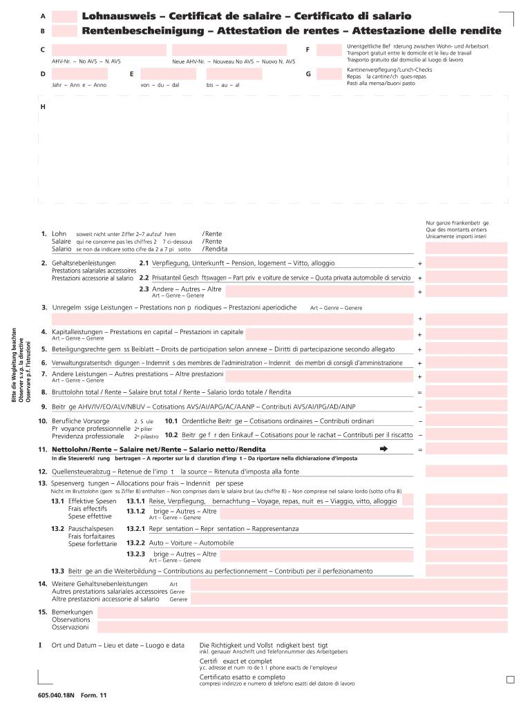 Lohnausweis Certificate DE salary Certificate DI salary Rentenbescheinigung Attestation DE rents Attestation Dell rend ite A B F C AHN. No AVS N.AVS Née AHN. Nouméa No AVS Nova N. AVS D E Jar Anne