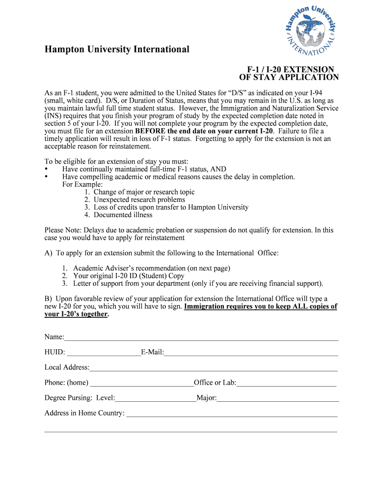 Get the free F-1I-20 Extension of Stay - Hampton University International Office - international ...