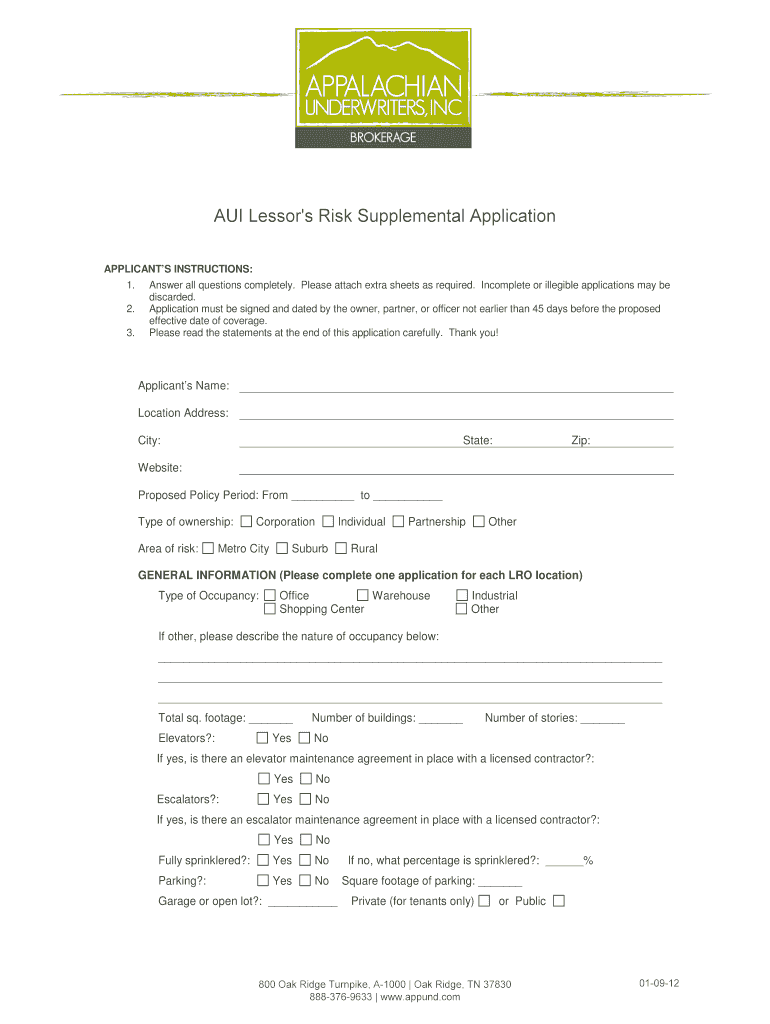 Lessors risk supplemental can be filled out by providing detailed information about the property, tenants, and any additional risks associated with leasing.