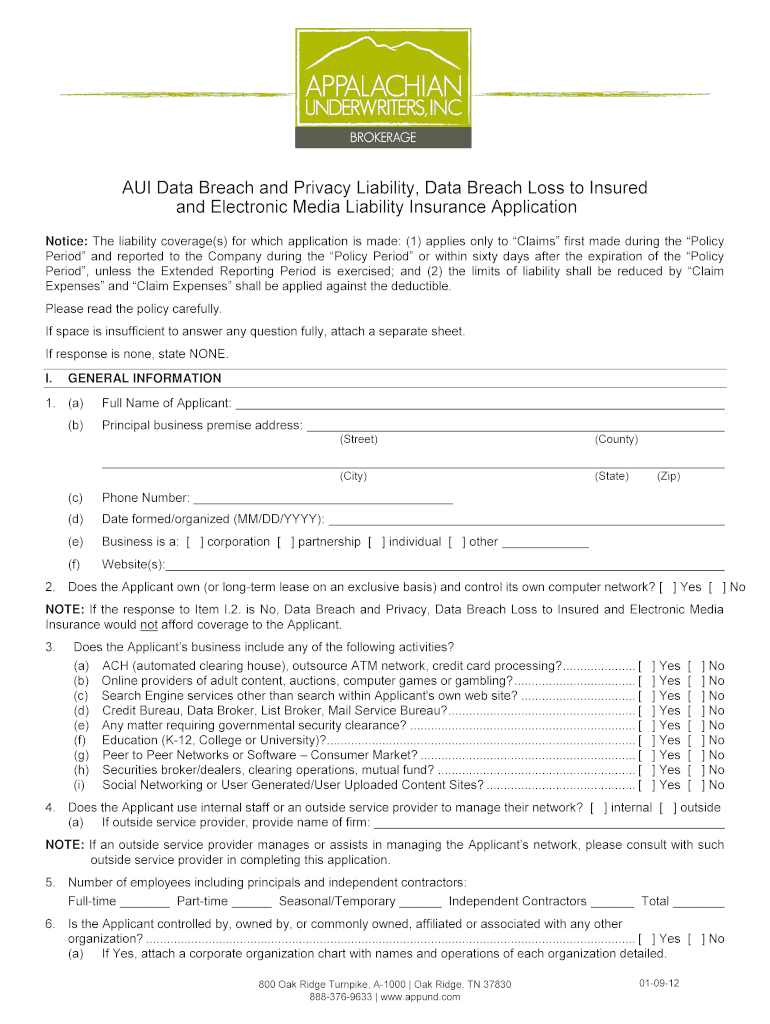 AUI Data Breach and Privacy Liability, Data Breach Loss to Insured