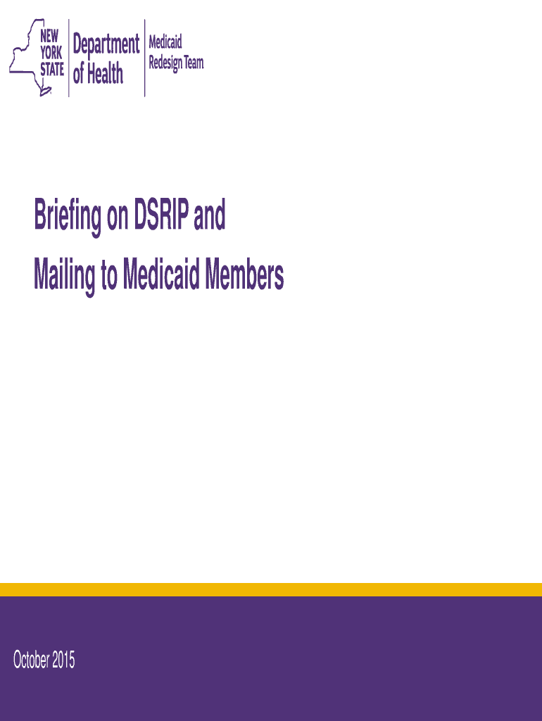 Get the free Briefing on DSRIP and Mailing to Medicaid Members Webinar Slide Deck October 2015 - ...
