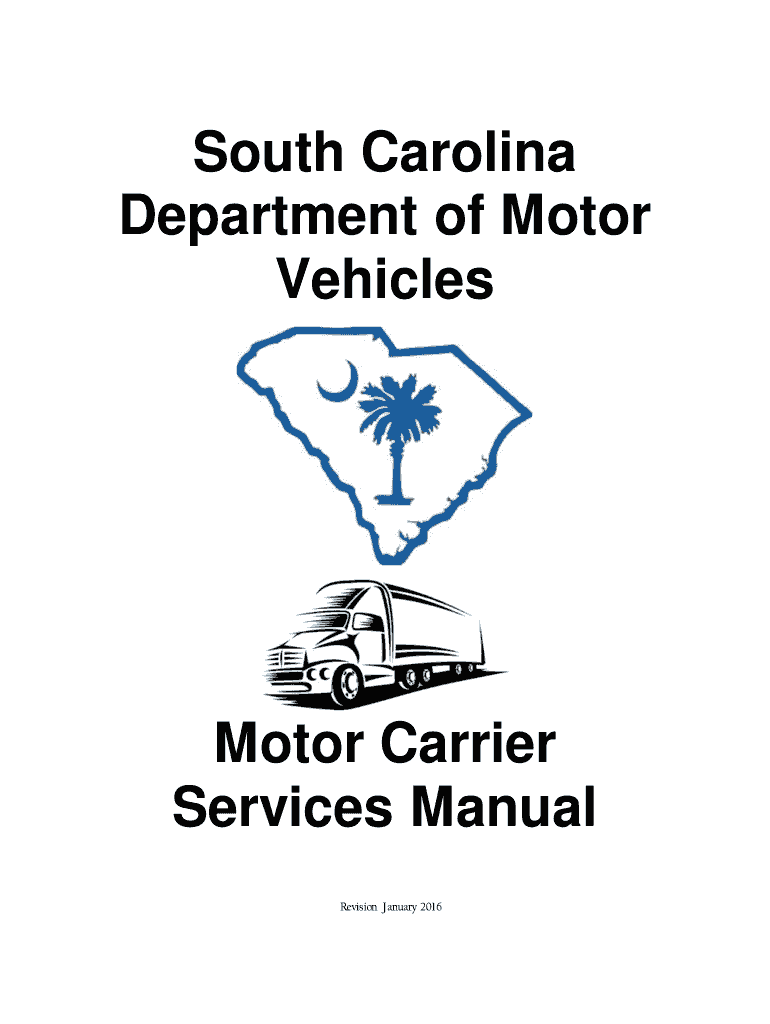 South Carolina Department of Motor Vehicles Motor Carrier Services Manual Revision January 2016 South Carolina Department of Motor Vehicles Motor Carrier Services Physical address: 10311 Wilson Blvd,