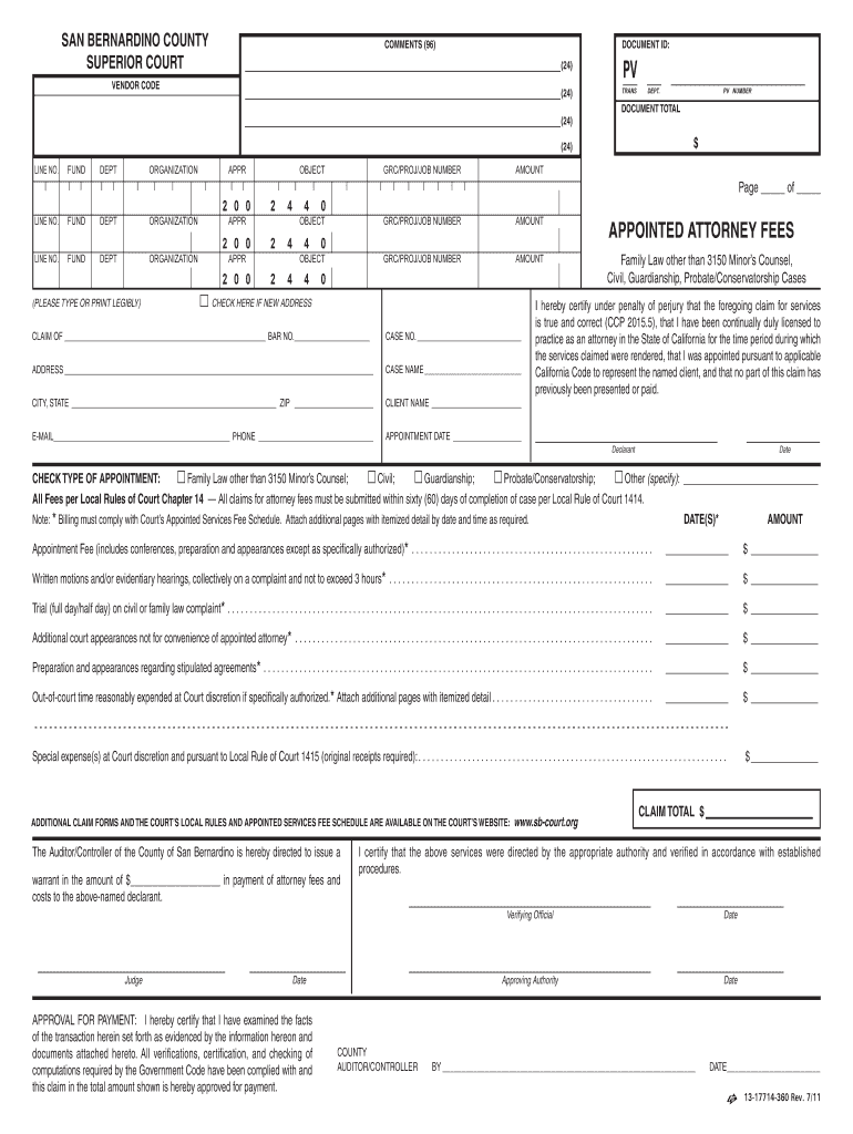 SAN BERNARDINO COUNTY SUPERIOR COURT COMMENTS (96) DOCUMENT ID: (24) VENDOR CODE (24) (24) PV TRANS FUND DEPT ORGANIZATION APPR OBJECT GRC/PRO/JOB NUMBER PV NUMBER $ (24) LINE NO. DEPT. DOCUMENT TOTAL