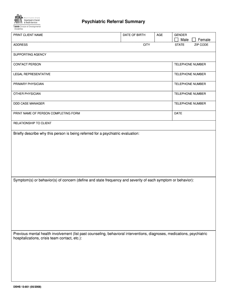 Get the free Psychiatric Referral Summary - Transforming Lives - dshs wa