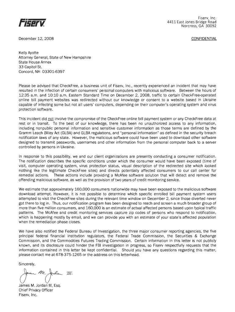 Fiber December 12, 2008, Fiber, Inc. 4411 East Jones Bridge Road Norcross, GA 30092 CON IDENTICAL Kelly Ayotte Attorney General, State of New Hampshire State House Annex 33 Capitol St. Concord, NH