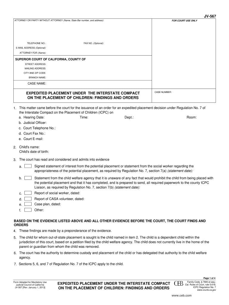 Get the free EXPEDITED PLACEMENT UNDER THE INTERSTATE COMPACT