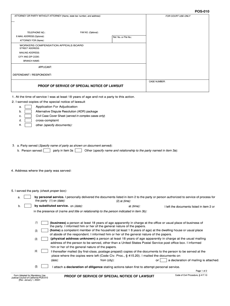POS010 ATTORNEY OR PARTY WITHOUT ATTORNEY (Name, state bar number, and address): FOR COURT USE ONLY FAX NO. (Optional): TELEPHONE NO.: EMAIL ADDRESS (Optional): Ref. No. or File No.: ATTORNEY FOR