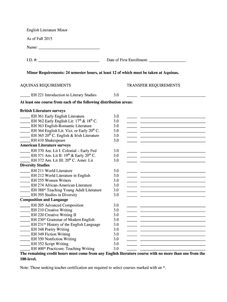 Get the free English Literature Minor - aquinasedu