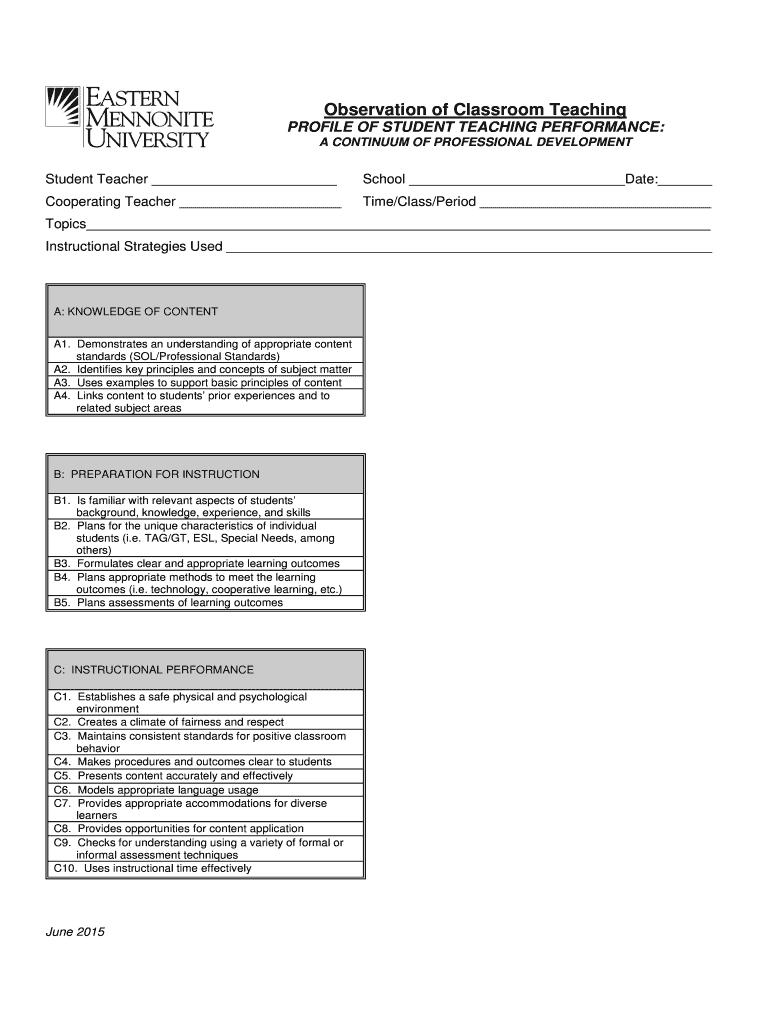 Get the free Observation form-for web - emu