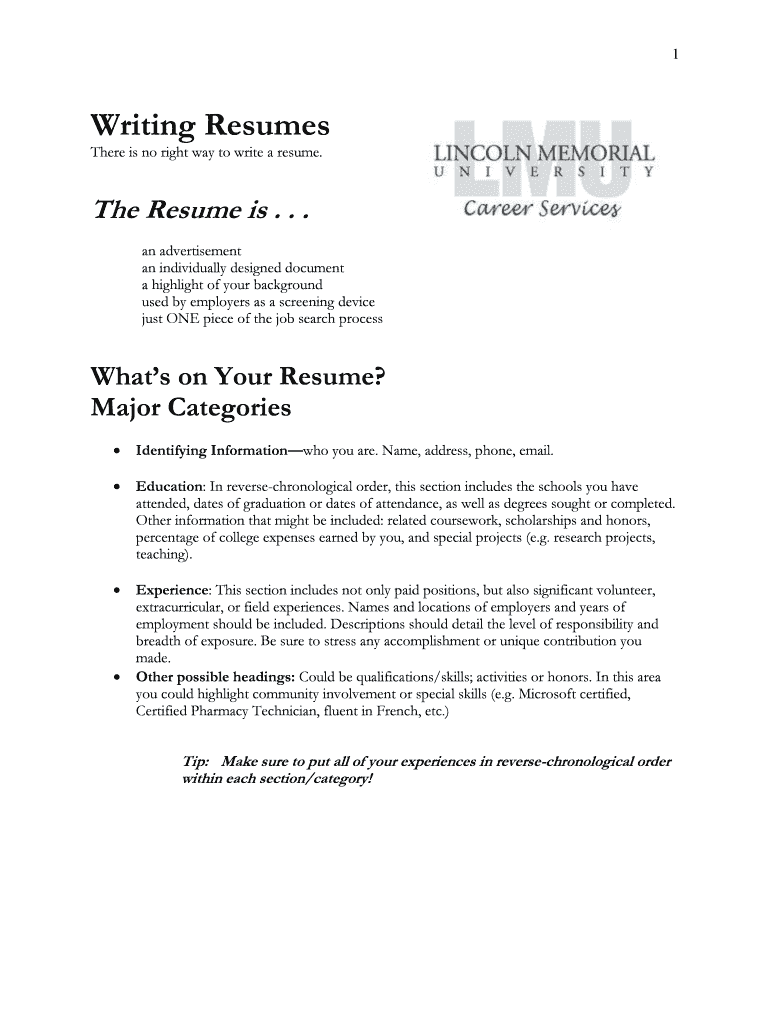 Get the free Writing Resumes - Lincoln Memorial University - lmunet