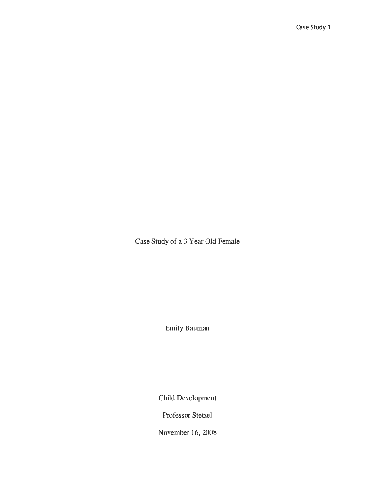 This document presents a detailed case study of a three-year-old girl named Kayla, focusing on her physical, cognitive, and emotional development, observed within the context of her family background