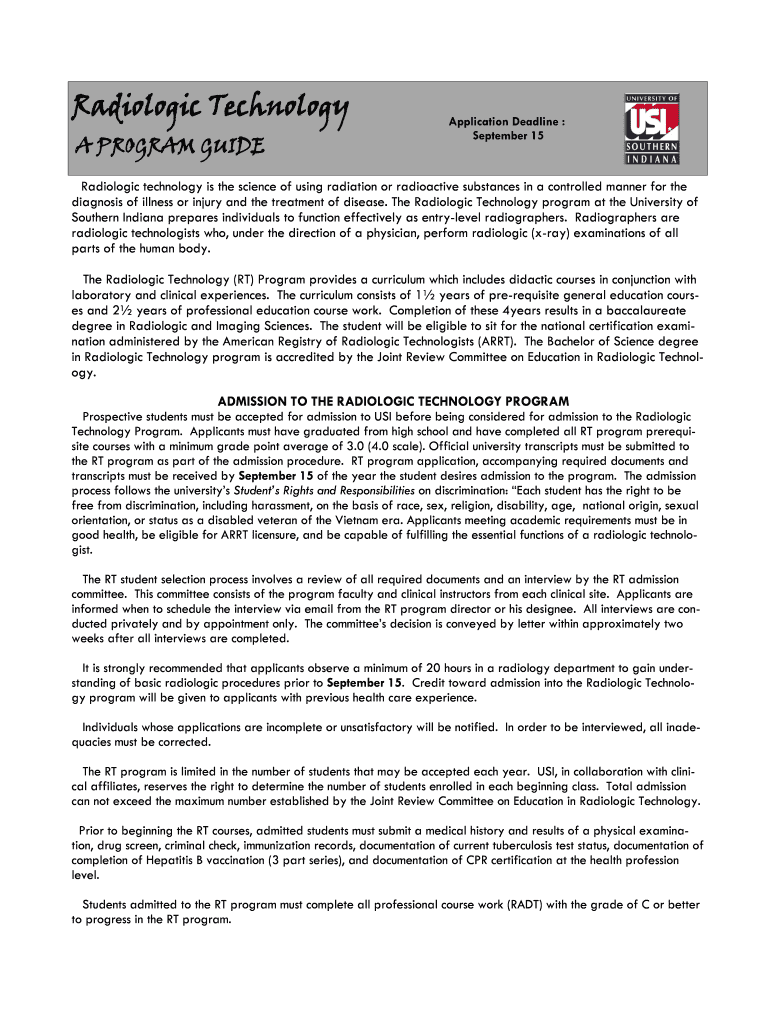 Get the free Radiologic Technology - USI - usi