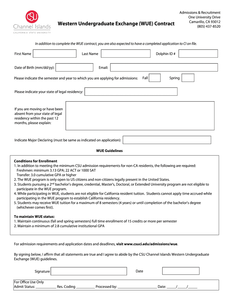 Get the free Western Undergraduate Exchange Contract - csuci