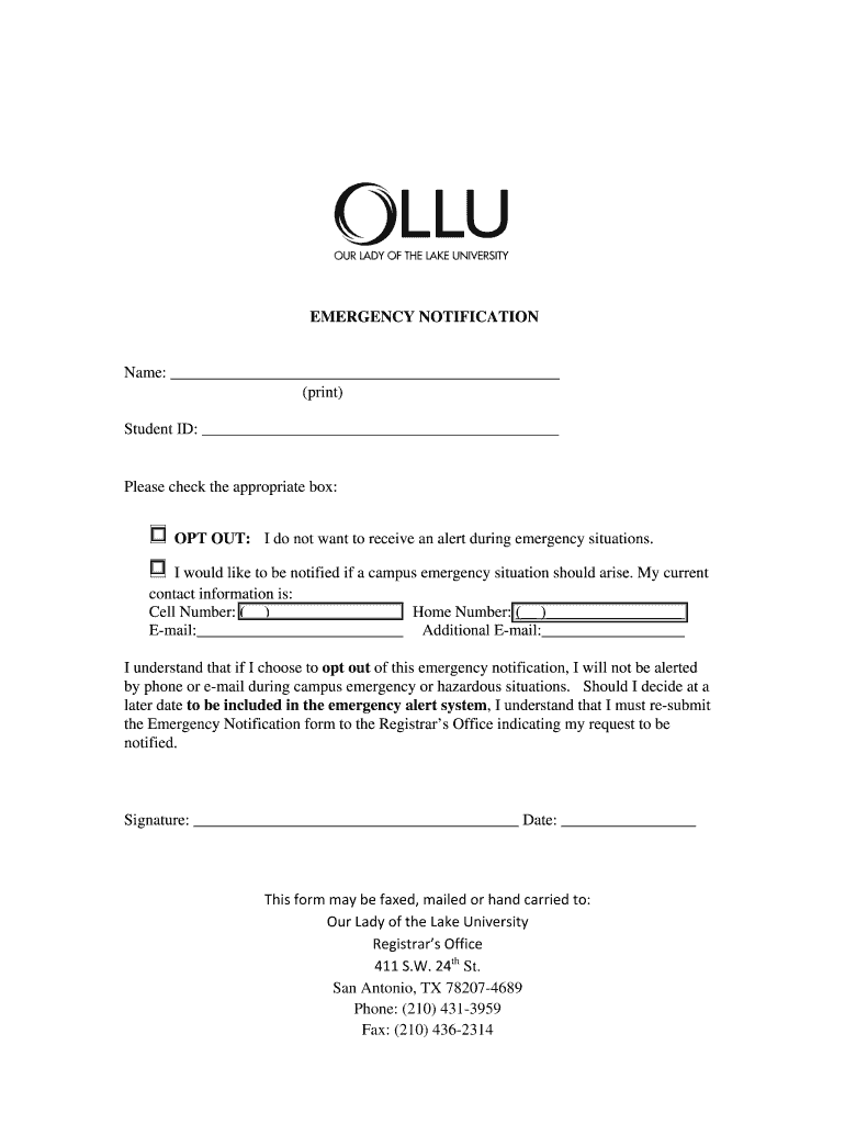 Get the free EMERGENCY NOTIFICATION OPT OUT - ollusa
