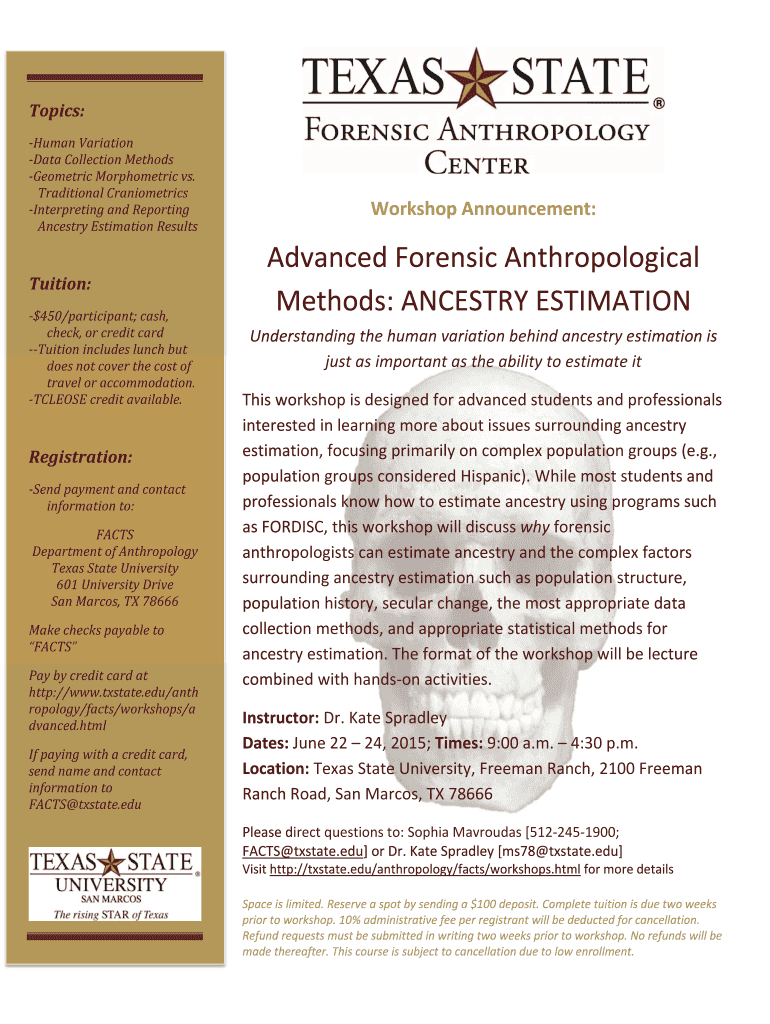 Get the free Advanced Forensic Anthropological Methods ANCESTRY ESTIMATION - txstate