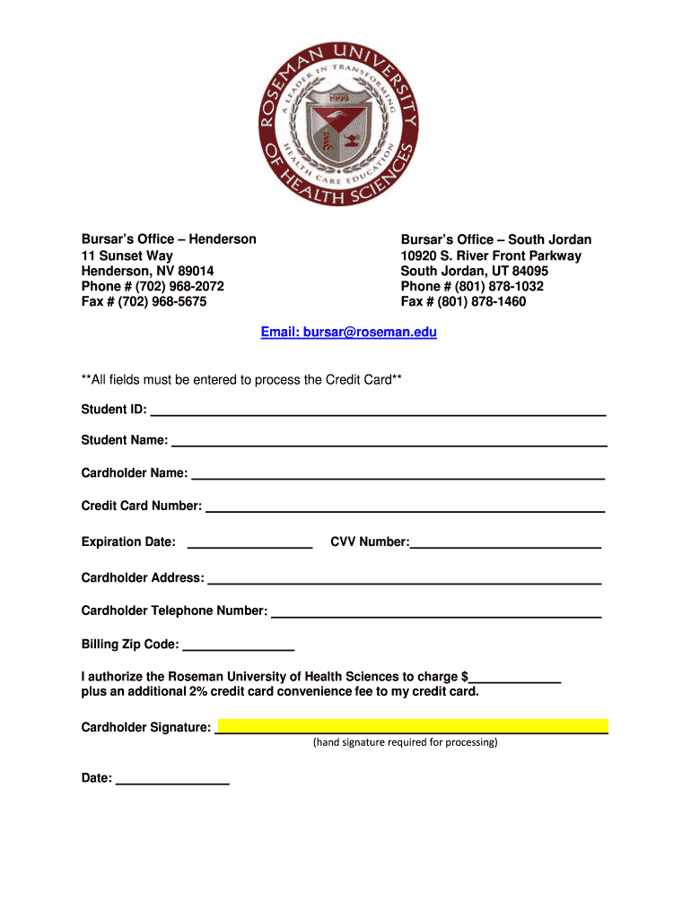 Third-party sponsors: If a student's education or expenses are being sponsored or covered by a third party, that sponsor may need to complete bursars credit card authorization as a means of payment.