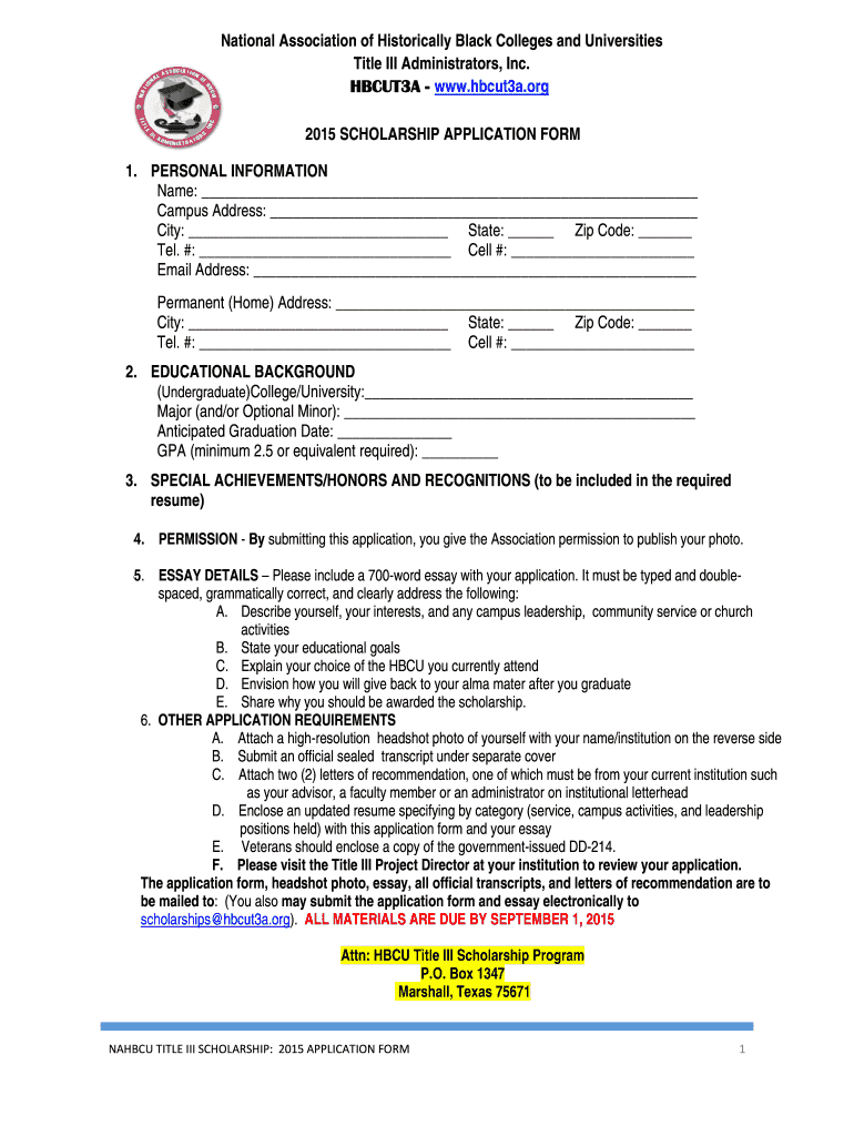 The form can be filled out online on the National Association of Historically Black Colleges and Universities website.
