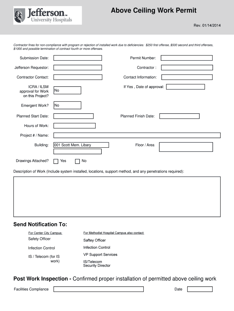 Get the free Above Ceiling Work Permit - Jefferson - jefferson