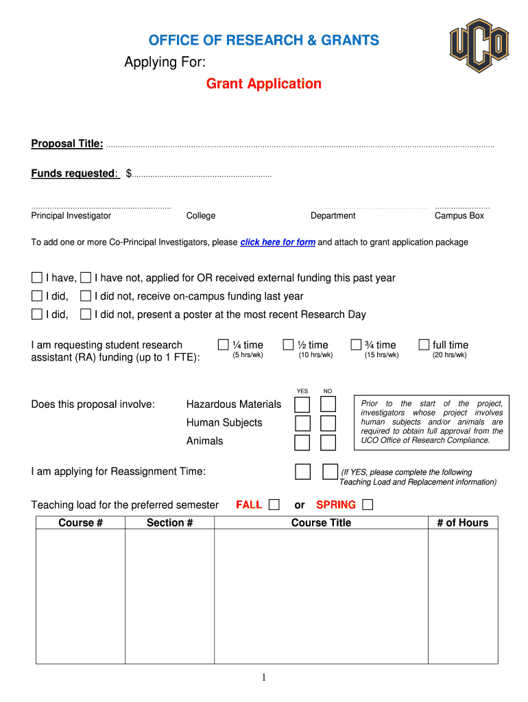 Get the free Grant Application - University of Central Oklahoma - uco
