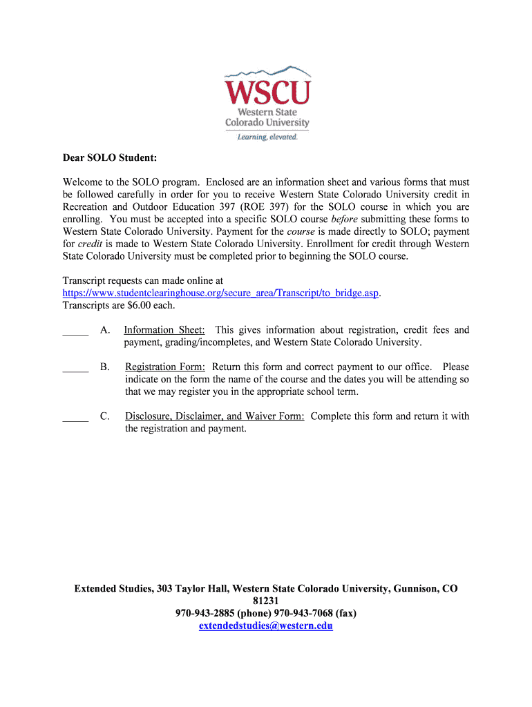 Get the free Dear SOLO Student - westernedu