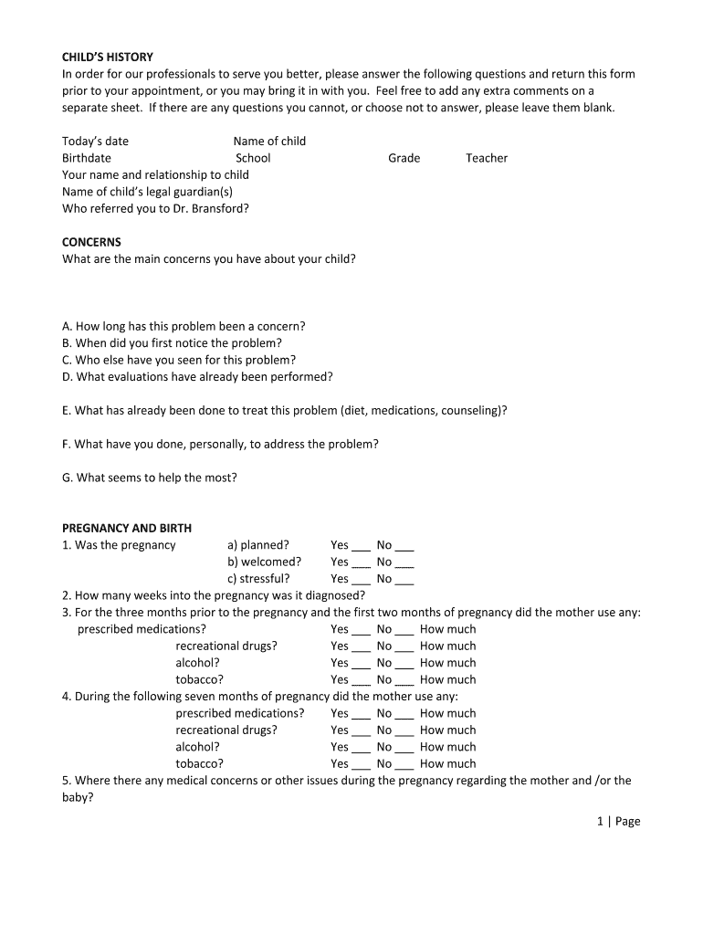How to fill out childs history - jlbransfordcom