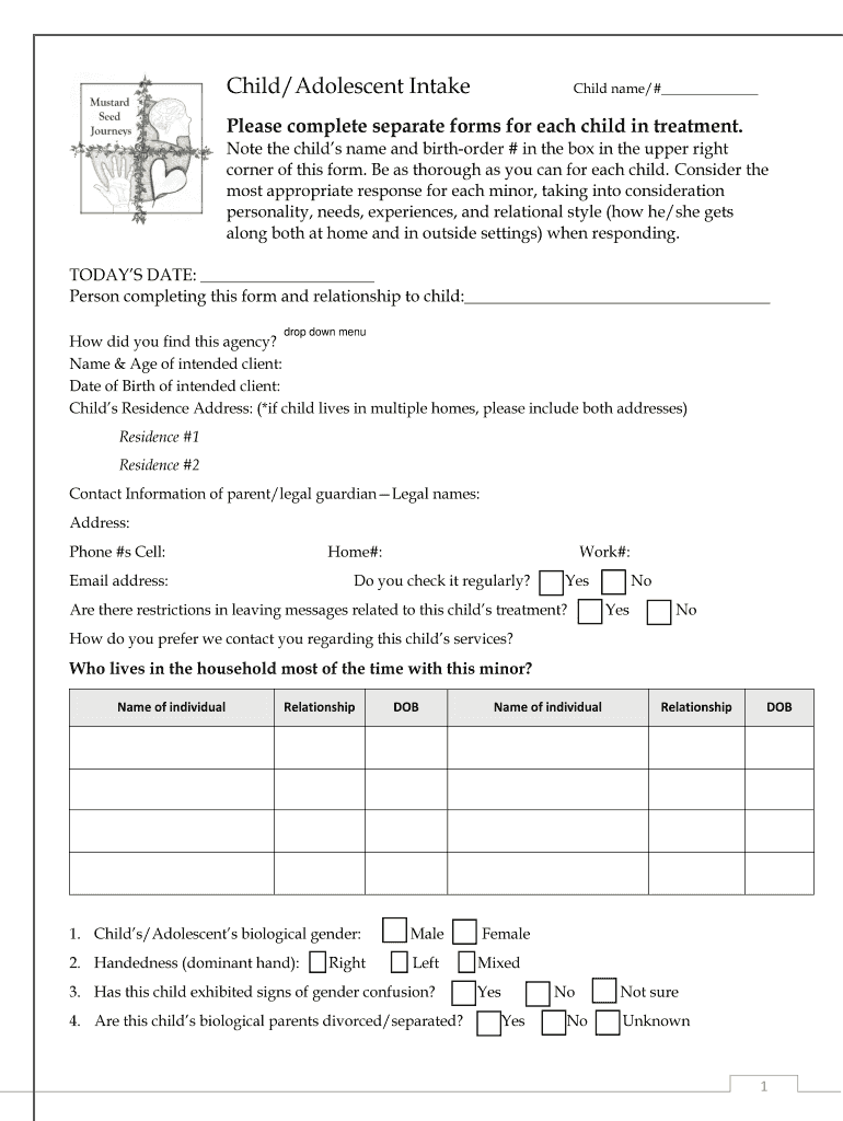 Child/Adolescent Intake Child name/# Please complete separate forms for each child in treatment. Note the children name and birth order # in the box in the upper right corner of this form. Be as thorough