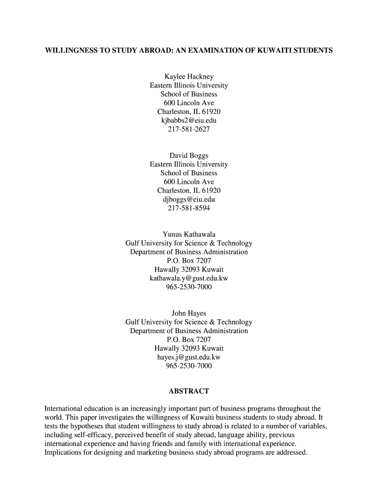Get the free WILLINGNESS TO STUDY ABROAD - nedsi