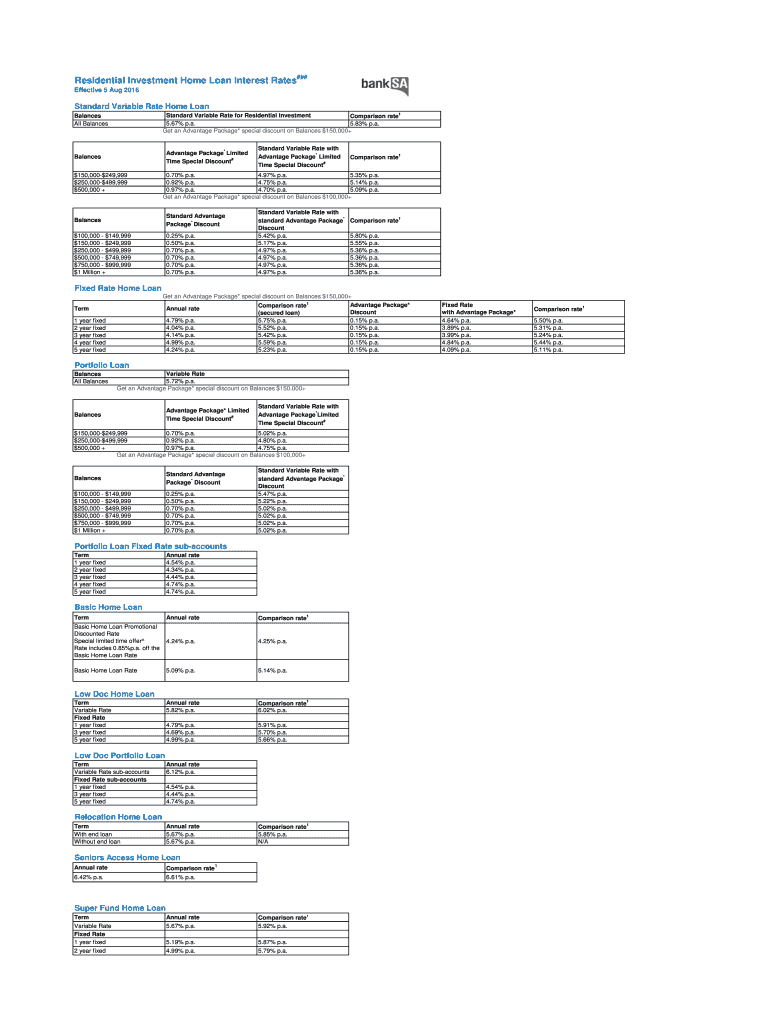 Effective 5 Aug 2016Standard Variable Rate Home Loan