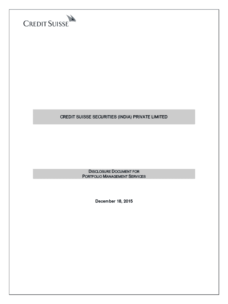 CREDIT SUISSE SECURITIES (INDIA) PRIVATE LIMITED D DISCLOSURE D DOCUMENT FOR P PORTFOLIO M MANAGEMENT SERVICES December 18, 2015 1 DISCLOSURE DOCUMENT FOR PORTFOLIO MANAGEMENT SERVICES U UNDER REGULATION