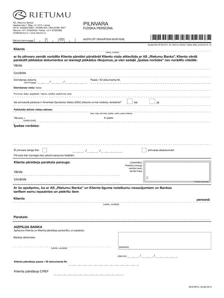 Get the free FIZISKA PERSONA - rietumu