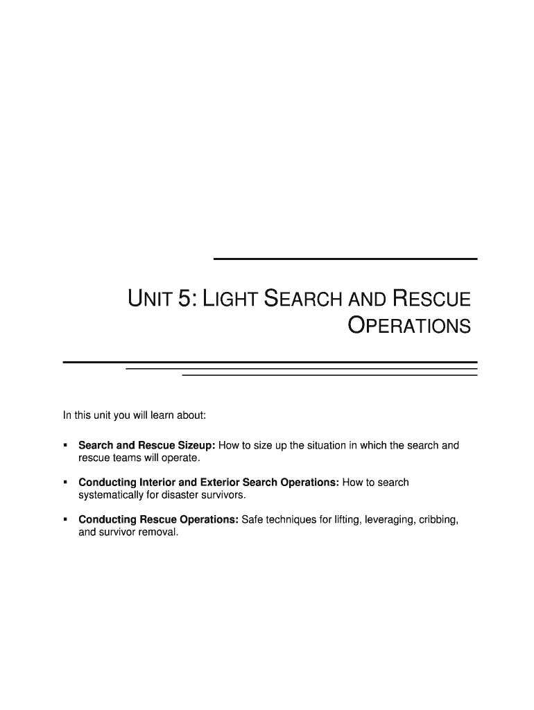UNIT 5: LIGHT SEARCH AND RESCUE