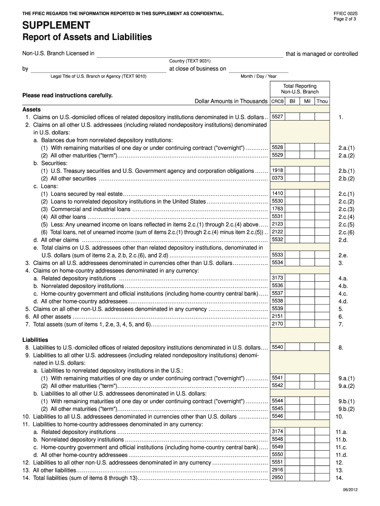 Board of Governors of the Federal Reserve System OMB Number 71000032 Approval expires December 31, 2015-Page 1 of 3 Federal Financial Institutions Examination Council Report of Assets and Liabilities