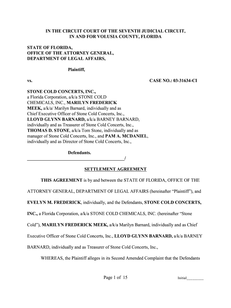 IN THE CIRCUIT COURT OF THE SEVENTH JUDICIAL CIRCUIT, IN AND FOR VOLUSIA COUNTY, FLORIDA STATE OF FLORIDA, OFFICE OF THE ATTORNEY GENERAL, DEPARTMENT OF LEGAL AFFAIRS, Plaintiff, vs. CASE NO.: 0331634CI
