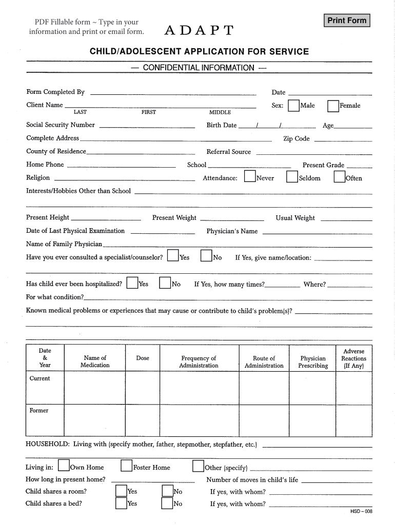 PDF Fillable form Type in your information and print or email form. Print Form Email Form.
