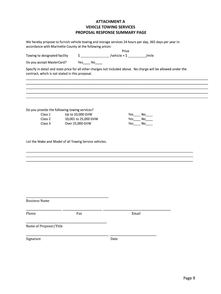 Request for Proposal (RFP) For Vehicle Towing Services Posting Date: October 28, 2013, Response Deadline: November 18, 2013 3:00 p.m. Central Standard Time (CST) To: Lieutenant James Albright Marionette