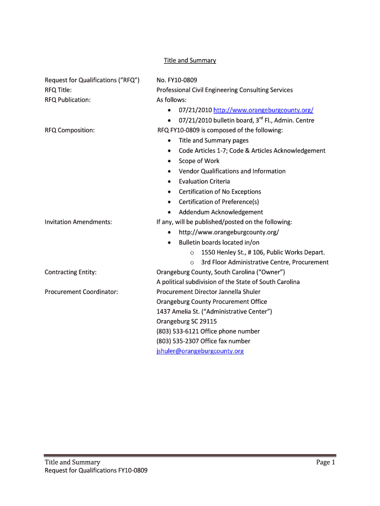 Rfq Publication - Orangeburgcounty is not the form you're looking for?Search for another form here.