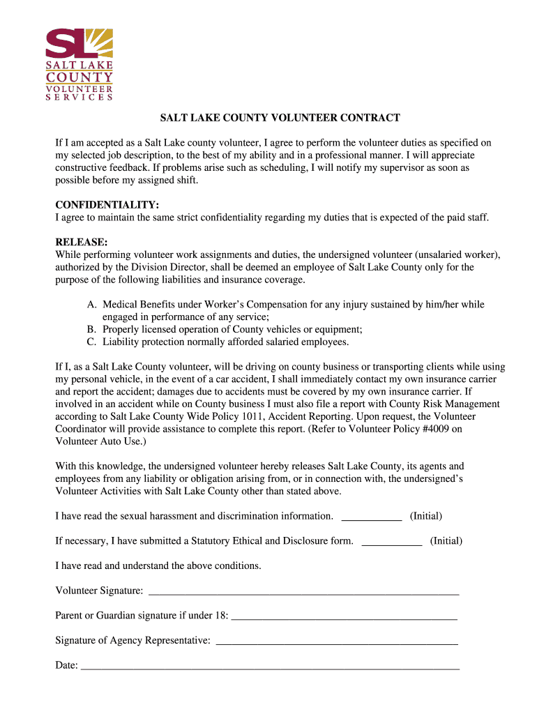 Get the free SALT LAKE COUNTY VOLUNTEER CONTRACT - slco