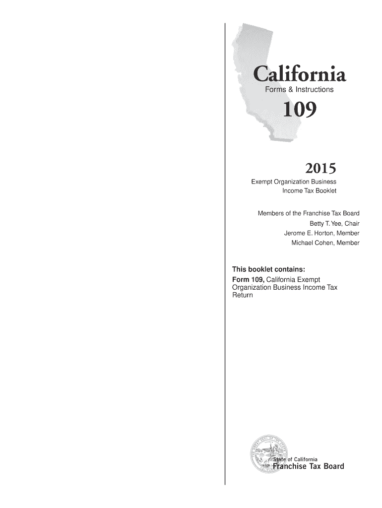 California Forms & Instructions109 2015 Exempt Organization Business Income Tax BookletMembers of the Franchise Tax Board Betty T. Yes, Chair Jerome E. Horton, Member Michael Cohen, Membership booklet