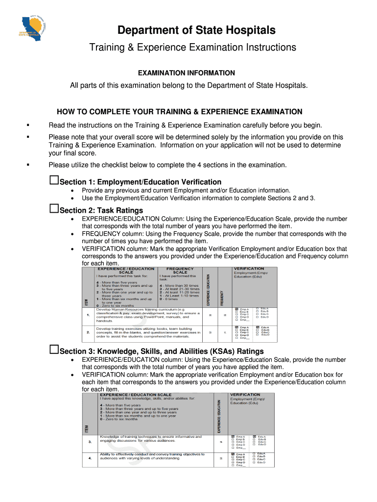 Items 17 30 ... Use the Employment/Education Verification information to complete Sections 2 ... for 100% of the weight of your examination for this classification.