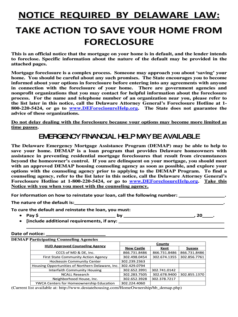 Get the free NOTICE REQUIRED BY DELAWARE LAW - attorneygeneral delaware