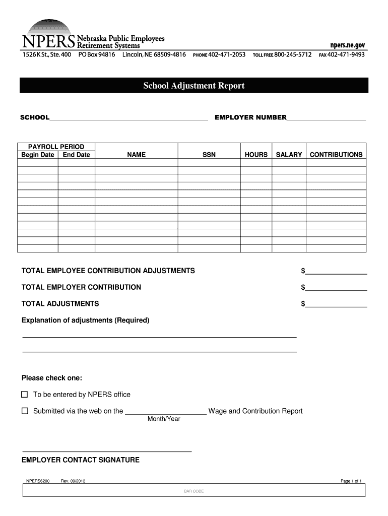 Employers who have made adjustments to NPERS contributions for employees are required to file the npers6200 adjustment reportdoc.