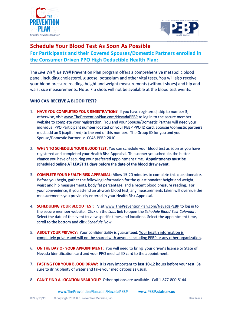 Get the free Biometric Screening Locations APPROVED 9-13-11 - pebp state nv