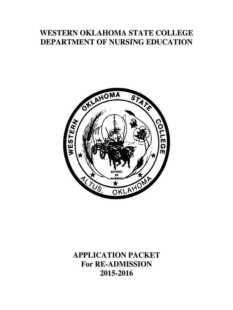 WESTERN OKLAHOMA STATE COLLEGE DEPARTMENT OF NURSING EDUCATION APPLICATION PACKET For READMISSION 20152016 WESTERN OKLAHOMA STATE COLLEGE DEPARTMENT OF NURSING EDUCATION NURSING REENTRY APPLICATION