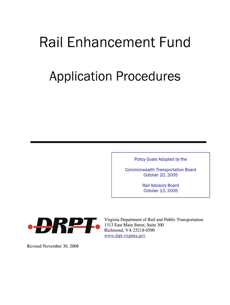 Get the free Rail Enhancement Fund - DRPT - drpt virginia