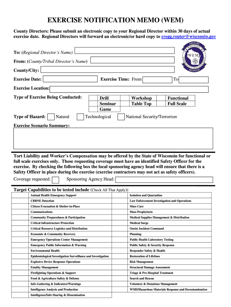 Get the free EXERCISE NOTIFICATION MEMO WEM - emergencymanagement wi