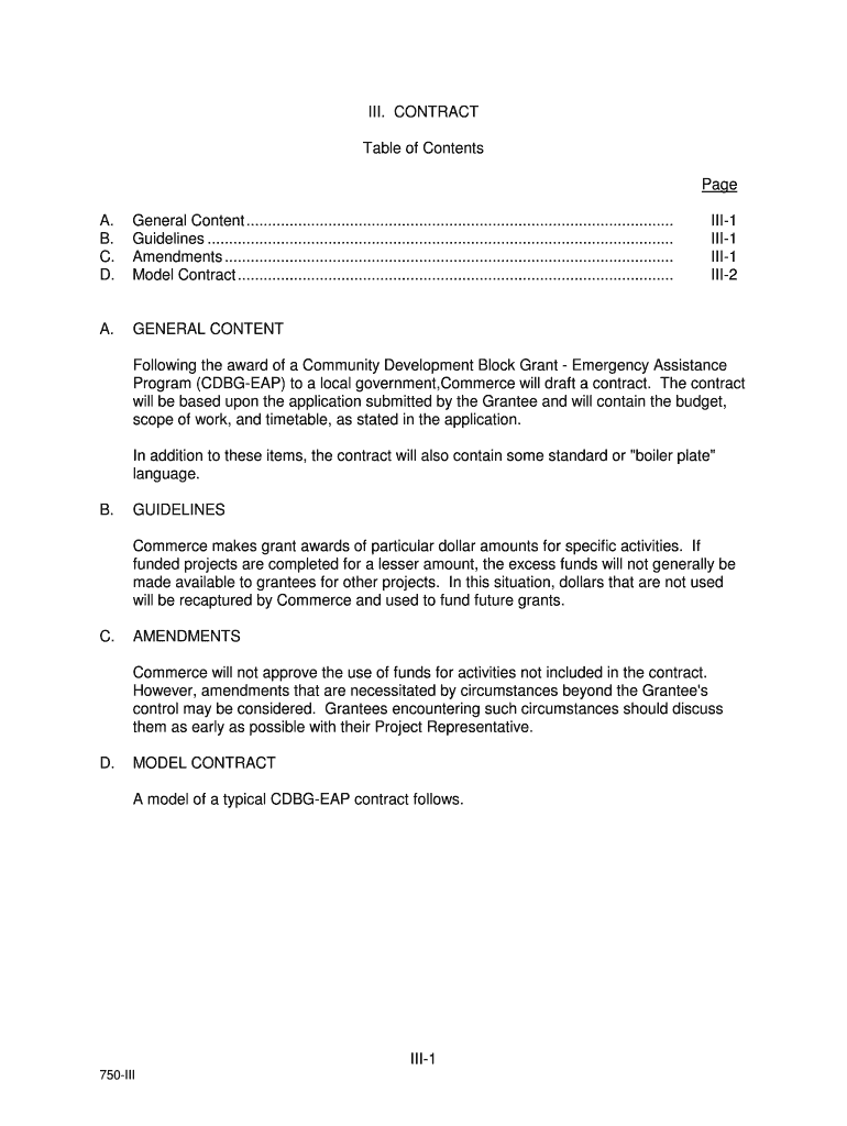 III. CONTRACT Table of Contents Page A. B. C. D. General Content ................................................................................................... Guidelines ............................................................................................................