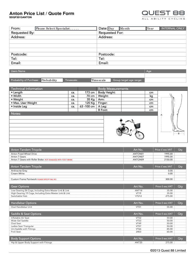 Get the free Anton Price List Quote bFormb - Quest 88