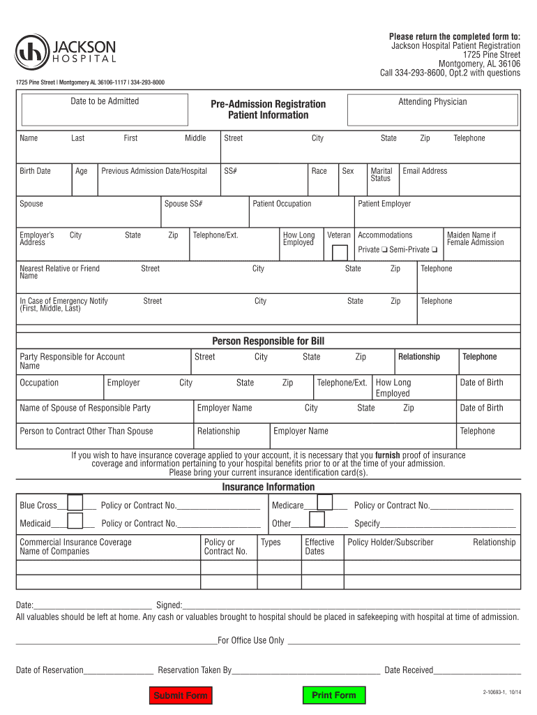 Patient information - jackson can be filled out through electronic health record systems or paper forms provided by the medical facility.